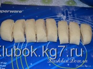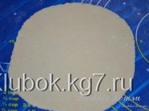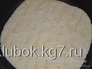 Тонко раскатать, наколоть вилкой, чтоб не вздувались.