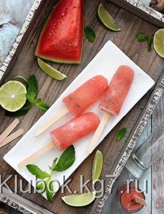 Для него понадобится красный сахарный арбуз. Часть его (~ 400 г) измельчаем в миксере, смешиваем с теплым сиропом из 20 г меда, 60 г сахара и 100 мл воды. Вливаем ложку лимонного сока, 20 мл портвейна и 60 – белого сухого вина. Перед тем как разлить сорбет по формочкам и заморозить, кладем на дно каждой по кубику арбуза. После первого часа заморозки аккуратно перемешиваем вилкой и замораживаем до «мороженной» консистенции.