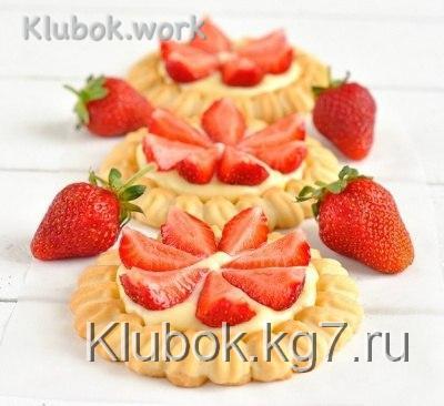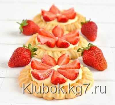 остывший крем, выкладываем его на тарталетки и украшаем клубникой или другими
