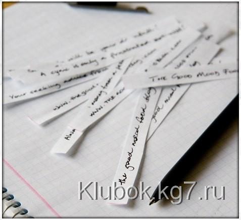 в художественных салонах), и просуньте пожелание в уже свёрнутое
