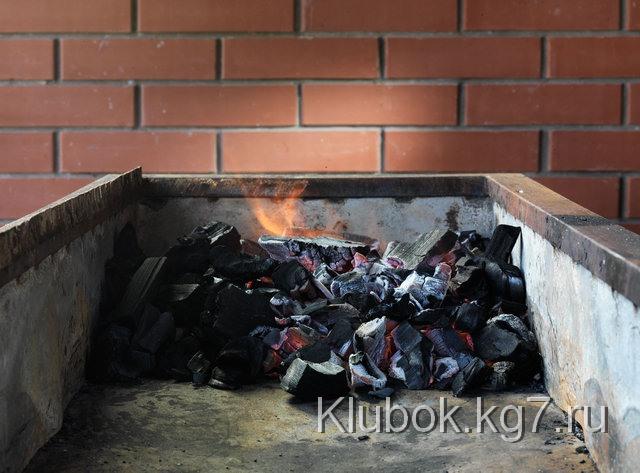 Щипцами снимите те угли, которые лежали наверху и пока не успели толком разгореться. Отложите их горкой в другой стороне мангала. Возможно, они вскоре понадобятся, а за это время как раз успеют разгореться как следует.
