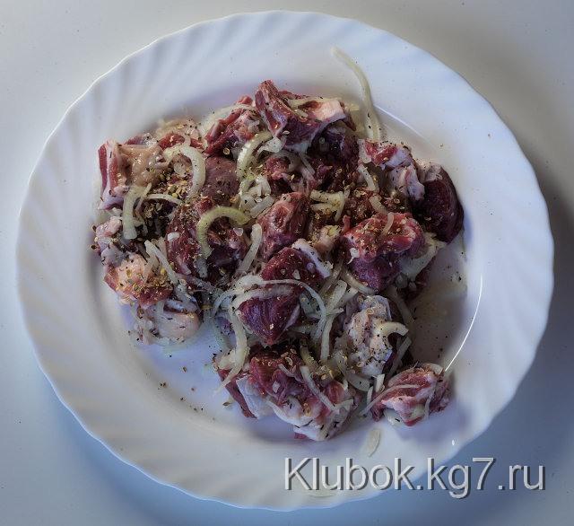 Жарьте шашлык после двух часов мариновки, тщательно удалив весь лук с мяса.