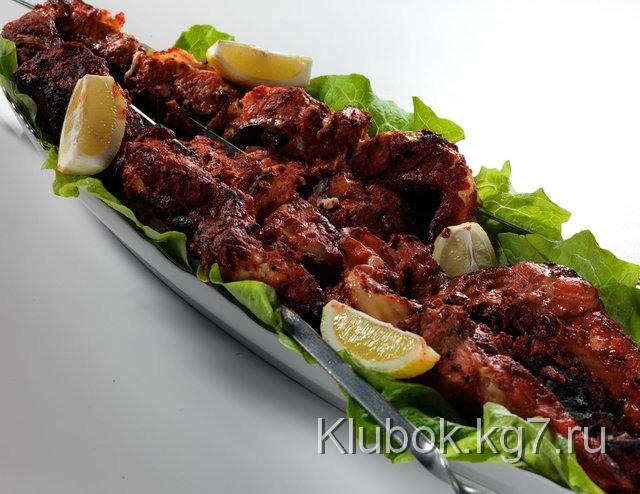 Например, шашлык из бараньих рёбрышек, приготовленных по предыдущему рецепту, получается превосходно! Необычайно нежная консистенция и принципиально новый для шашлыка вкус.