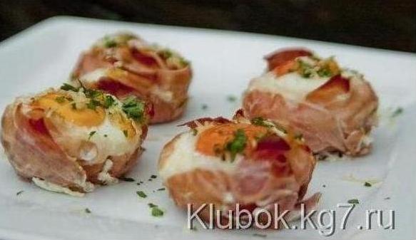 2,5 см ветчины. В каждую корзинку из ветчины положите по полной столовой ложке