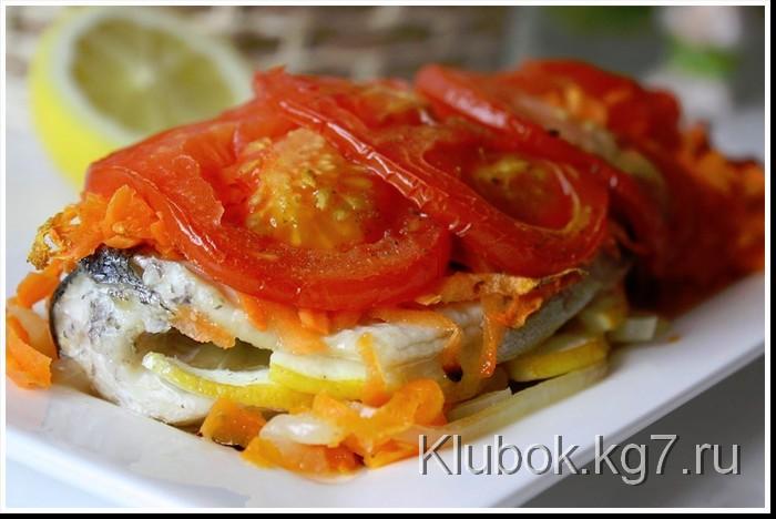 Place some onion on it, then the fish (previously salted and peppered a bit), then the carrot, and on top - the tomatoes.