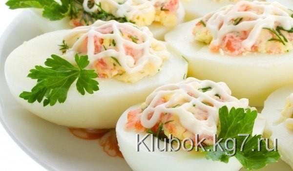 7. Shrimp with yolk. On top – one whole boiled shrimp.