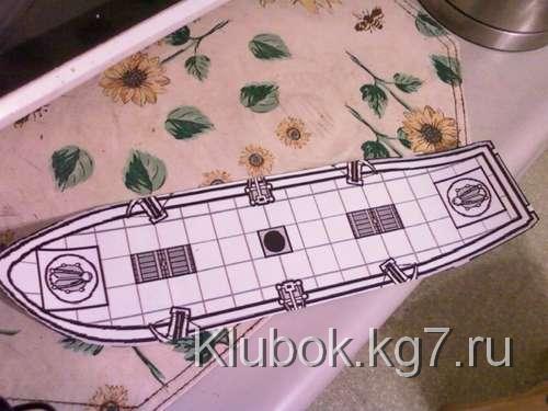 я нашел подходящей раскладки где-то в Интернете (Google, что же еще?), Чтобы дать кораблю надлежащую "пиратскую " форму, я скопировал его, разрезал и разнес части, чтобы было около 14 "длинной, напечатал его.