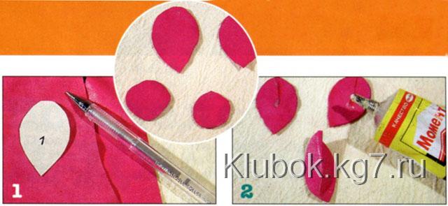 1. Изготовьте из картона шаблоны лепестков. Перенесите выкройки