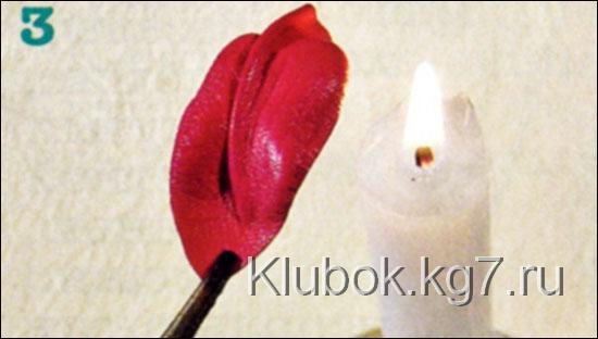 пламенем свечи (изнаночной стороной вниз). Края станут рельефными и загнутся в