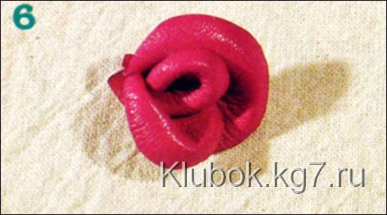 круга с собранными лепестками и торец розочки смажьте клеем. С помощью пинцета