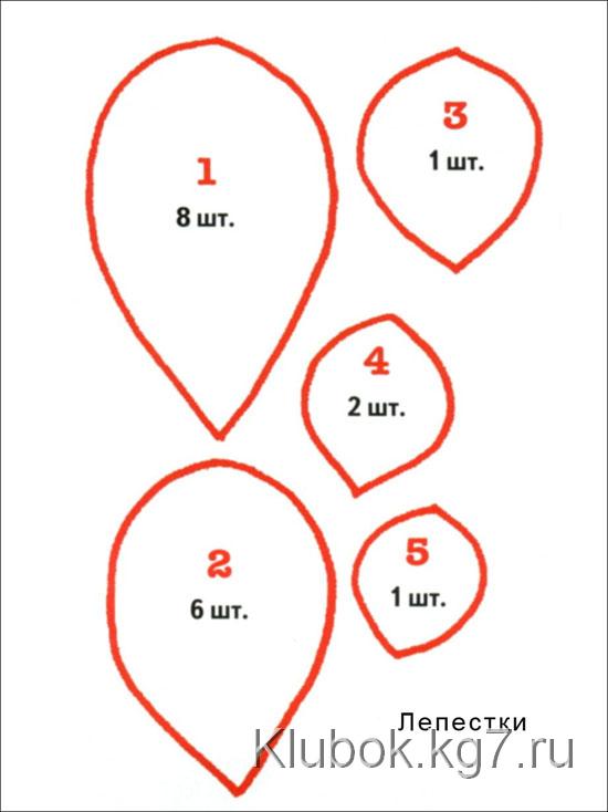1. Изготовьте из картона шаблоны лепестков. Перенесите выкройки