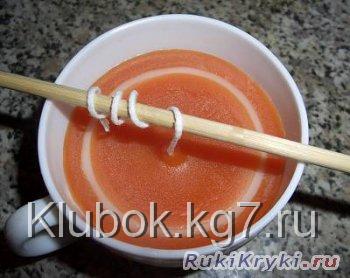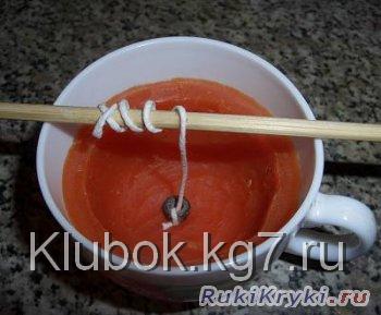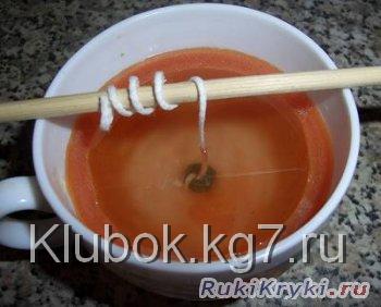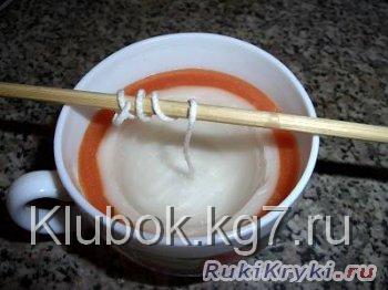 вытекания из формы. Натягиваем фитиль, верхний конец фиксируем на бамбуковой