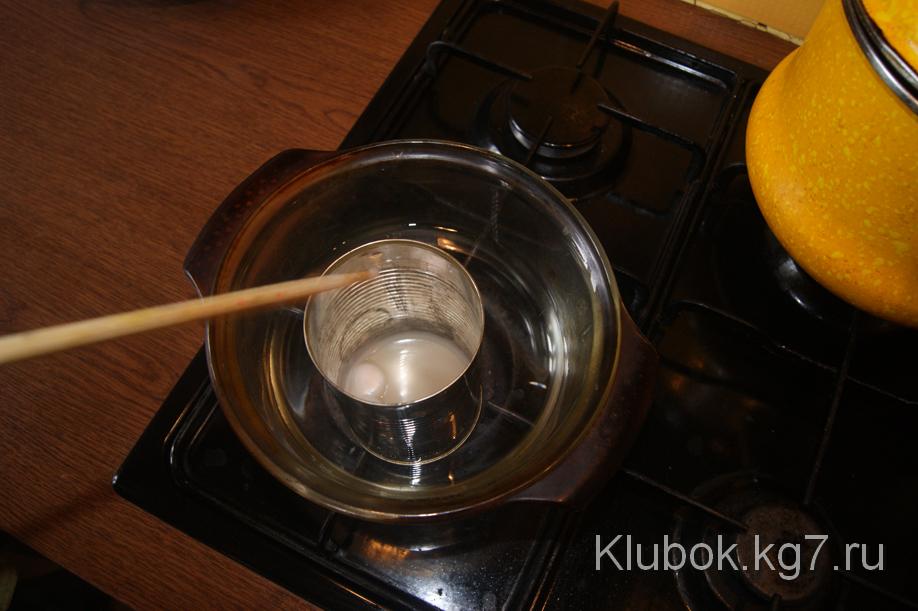 Начнем с того,что растопим парафин на водяной бане в посуде,которая будет вам служить только для этого.