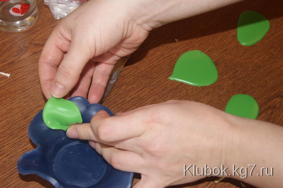 салфеткой. Вернемся к процессу. Краситель добавляем в парафин,когда