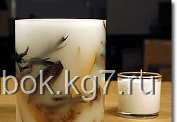 Если Вы решите сделать такое свечи, то рекомендуем Вам прочитать статьи «Делаем свечи дома» и «Делаем свечи. Сама себе подсвечник». Информация из этих статей пригодится при изготовлении свечей со осветленными краями.