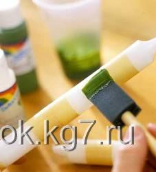 Примечание: таким образом можно раскрасить только гладкие свечи. Если поверхность свечи шершавая, то краска не ляжет.