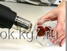 7. Нагрейте одну сторону подсвечника монтажным феном или над газом и прижмите сердечко изнутри к стенке подсвечника, чтобы оно прилипло к стенке.