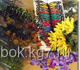 -декоративные элементы: сухие цветы и трава, стекляриус, шелковые цветы, просто яркие наклейки