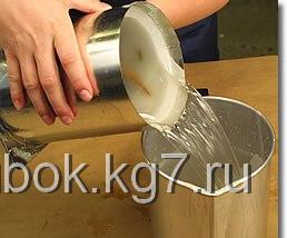 Затем одним быстрым движением выливаем жидкий воск в емкость, в которой мы его топили.