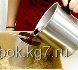 Внутренний цилиндр отпускаем. Во время остывания, каждые 2-3 минуты приподнимаем его вверх. Таким образом, внутренняя и внешняя части буду составлять одно целое.