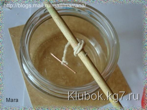 Опускаем грузик на дно банки. Другой конец фитиля закрепляем на