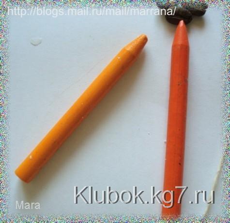 Теперь "даем цвет" при помощи восковых мелков для рисования. Я взяла красный,