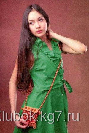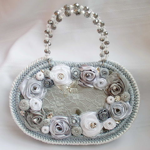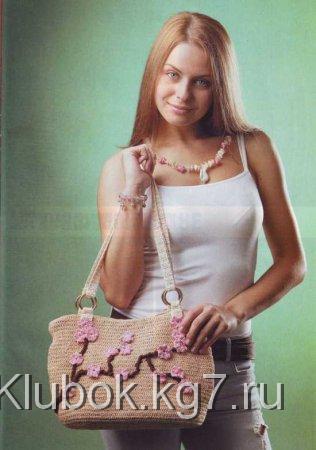 Обвяжите получившийся клапан 1 рядом ст. б/н. Пришейте клапан к сумке, пришейте пуговку. Возьмите нить в тричетыре сложения, свяжите две цепочки длиной 70 см и пришейте к сумке.