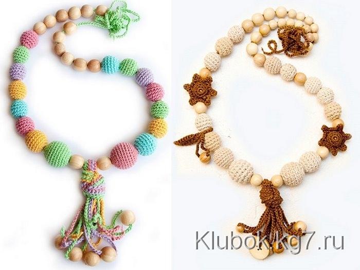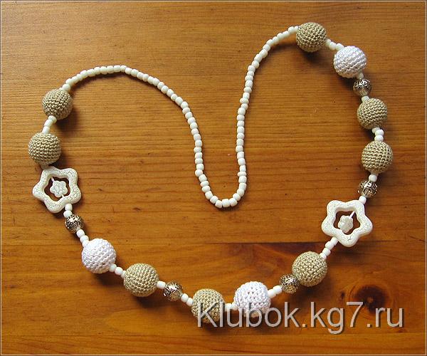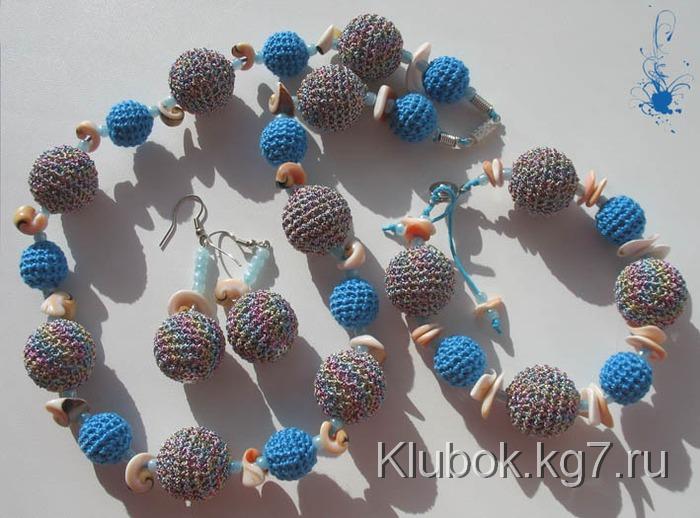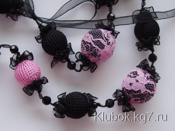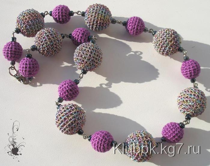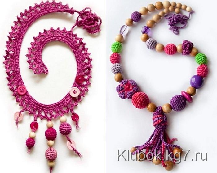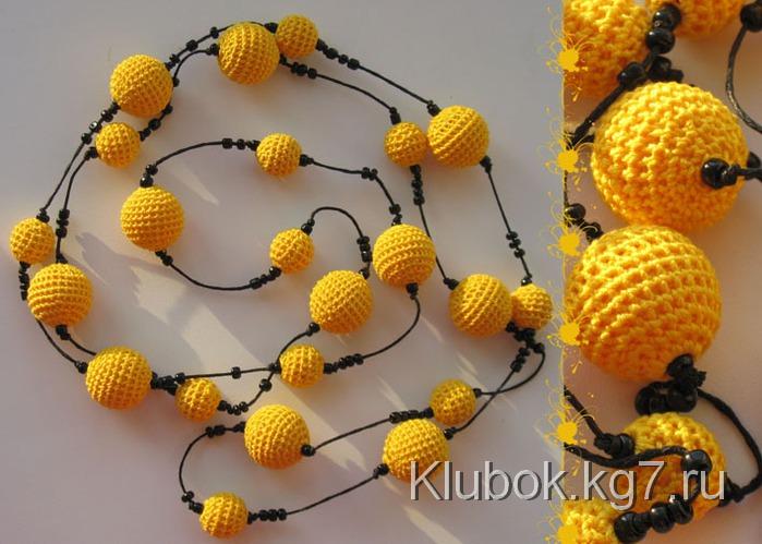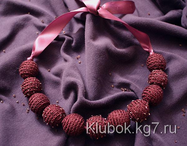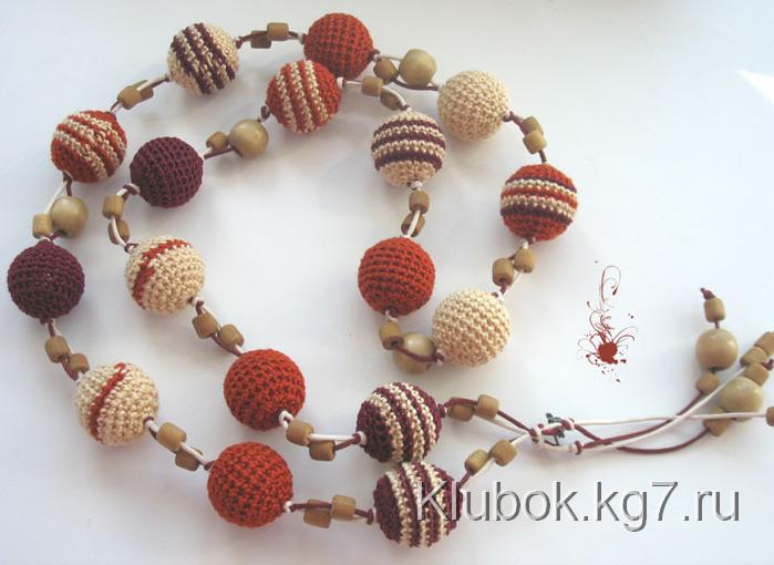 Какие украшения можно связать крючком? – как ни странно самые разные и очень стильные. Например бусы и серьги. Каждая бусинка вяжется отдельно, а затем нанизывается на шнур или ленту.