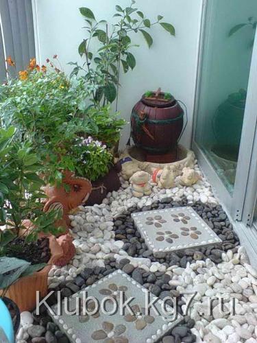 Комнатные и горшечные растения помогут создать у вас на балконе благоухающий оазис. достаточно приобрести самые простые пластмассовые горшки для растений и украсить их своими руками – покраской, декупажем, оклейкой зернами или песком. Небольшая каменистая горка сооруженная в тазике может создать эффект ландшафтного дизайна. Вы можете сделать сад в плошке – высадив в одну широкую емкость несколько разных растений и украсив композицию камнями или сухими корягами.