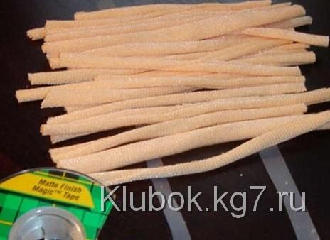 режем их по длине. Мы резали по 10 см. Далее будет шитье по основной ткани. У