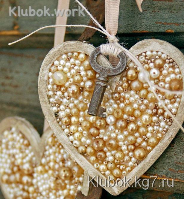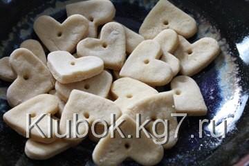 Для того чтобы изготовить такие сердечки нам нужно приготовить тесто. Для этого нужен один стакан муки, пол стакана теплой воды и пол стакана соли. Это все нужно хорошо смешать пока не получится однородная консистенция. Теперь берем форму сердца и вдавливаем в тесто затем с помощью палочки или гвоздя в средине сердца делаем отверстие. Ставим в духовку на два часа, при этом температура должна быть 250 градусов Цельсия.