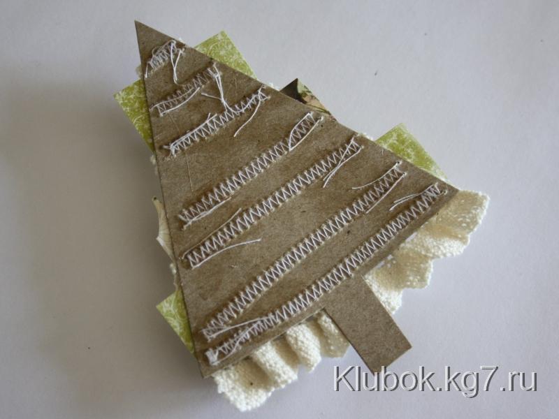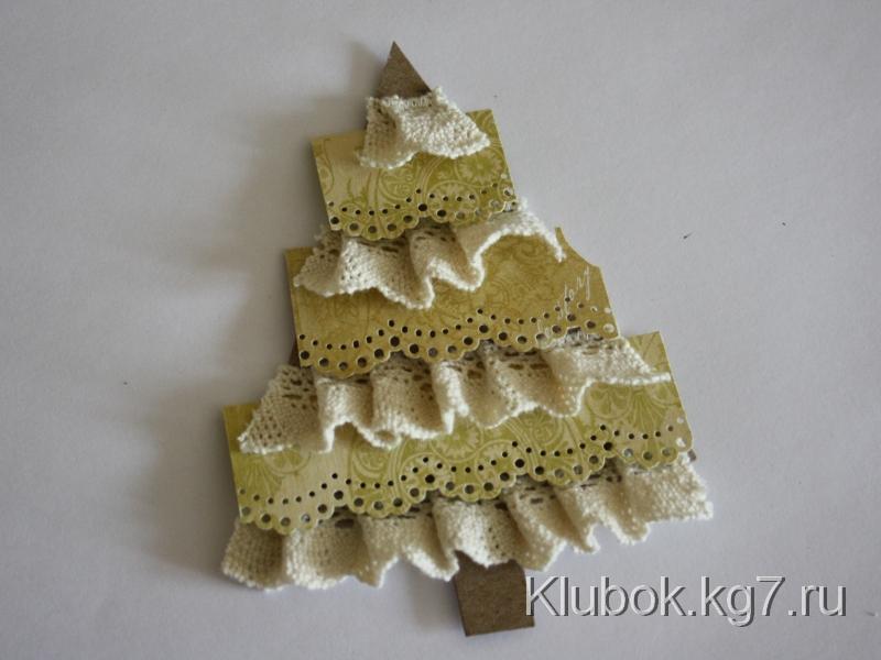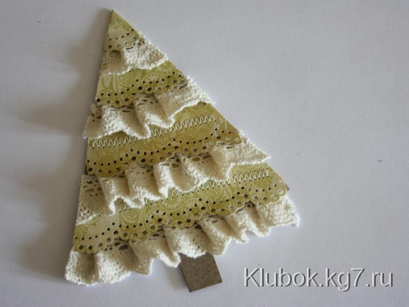 Варианты этой же ёлочки: вместо бумажного кружева можно использовать любые ленты, пришитые так же, как кружево; либо декоративные ленты с розочками.