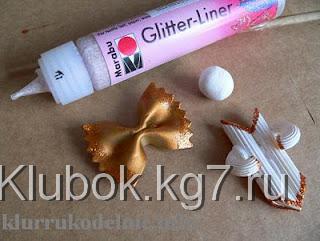 белой акриловой краской. Макаронные изделия "бантики" - крылья наших ангелочков