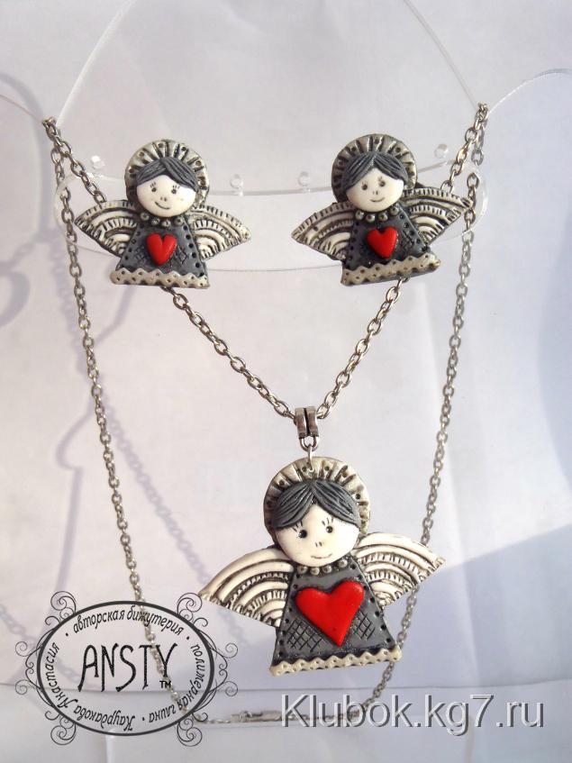вот такие милые человечки с нимбами и крылышками можно сделать за несколько часов. Эти ангелочки могут стать чем угодно: подвесочкой и сережками как у меня, брошью или брелоком.