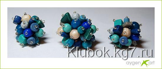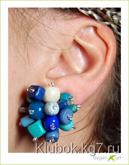леску продеваем сквозь ушко, насаживаем одну из бусин (я снова не фоткала в процессе, так что показываю на каменной бусине)
