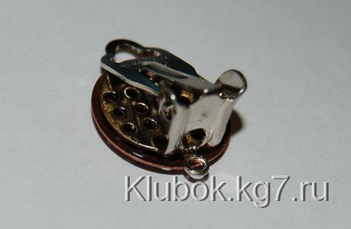 потом соединяем ее (только она уже должна быть "ежовита") с основой для клипсы и леской как бы прошиваем два кругляша через край