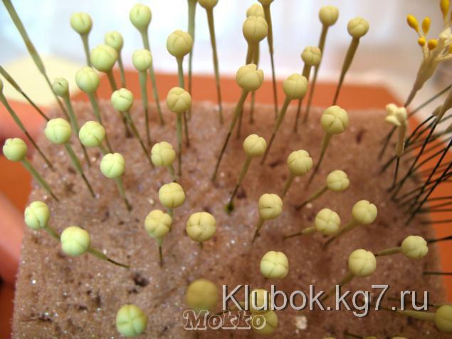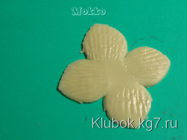 капельку (на весь цветок), рассечь ее ножницами крест-накрест (не до конца) и
