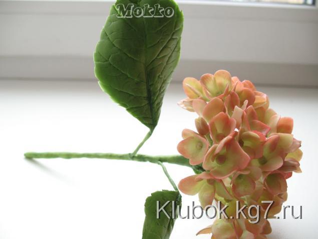 листа гортензии у меня нет. Вырезала стеком на раскатанной глине:
