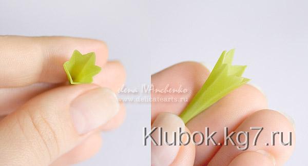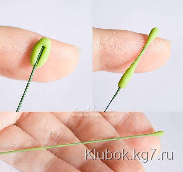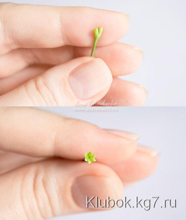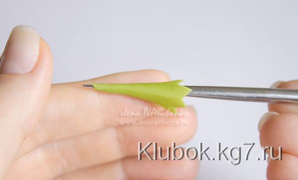 мы смазываем стебель клеем и надеваем чашелистик.
