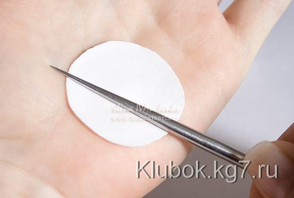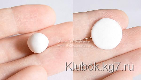 небольшое количество белой глины. Катаем шарик и расплющиваем его, чтобы был