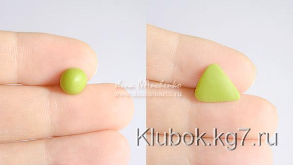 нашей зеленой глинке, берем небольшой кусочек и делаем из него плоский