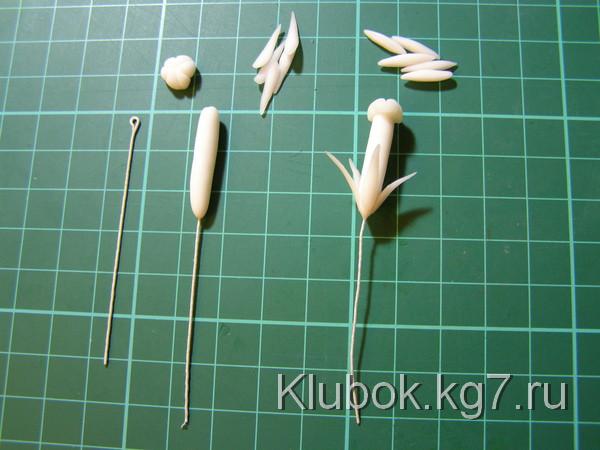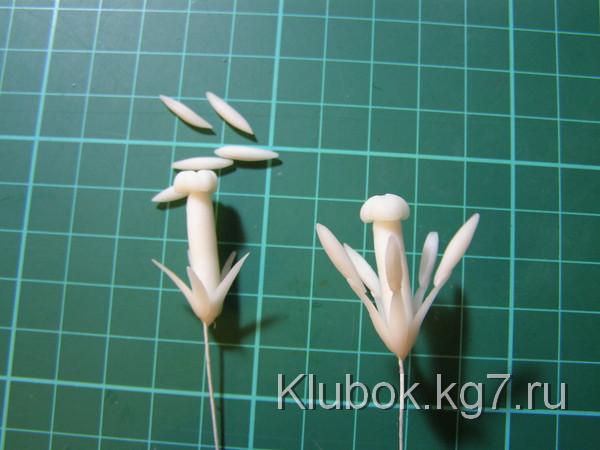 глины (в нее в дальнейшем будем вставлять каркас лепестка). Пальцами делаем эту