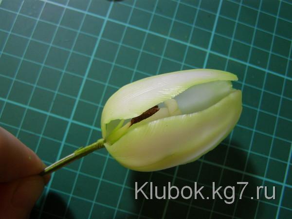 вставляем проволочку в толстую часть лепестка см на 3 вглубь.