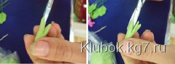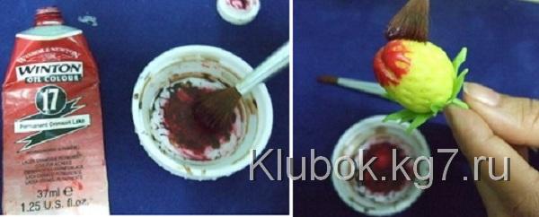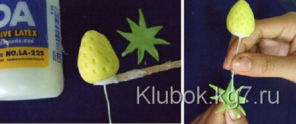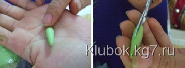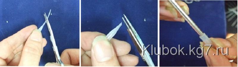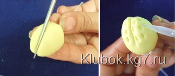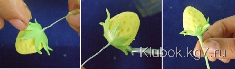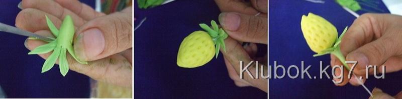 для начала необходимо найти подходящую трубочку и сделать на ней срез по уголм в 45°. Этим срезом делаются насечки на ягоде - так называемые "семечки". для удобства работы трубочку можно закрепить на карандаше или стеке.