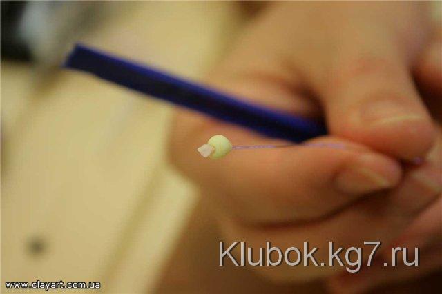 проволоку. Стеком намечаем, слегка продавливая, деление шарика на шесть частей.
