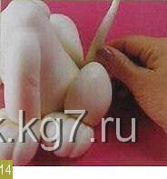 Ножиком сделайте складочки и пальцы. Разгладьте острые края.