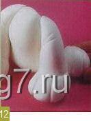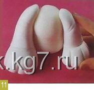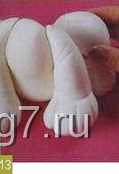 Из фарфора того же цвета слепите два овала. Это верхняя часть задних лапок. Немного приплюсните.