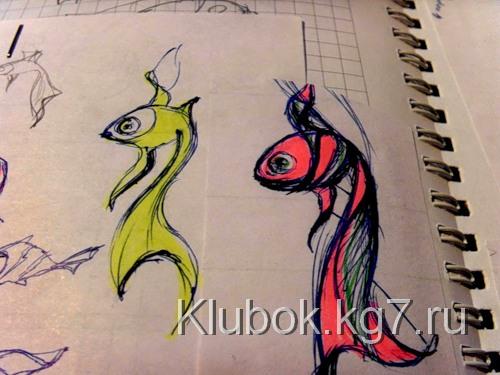 рисуем эскиз будущей рыбки.