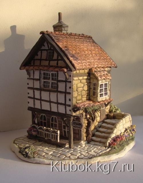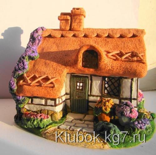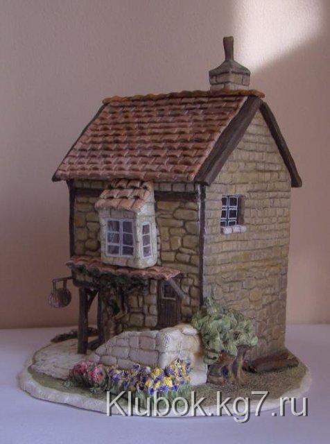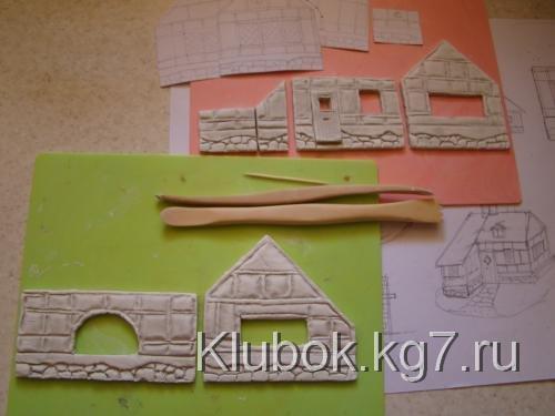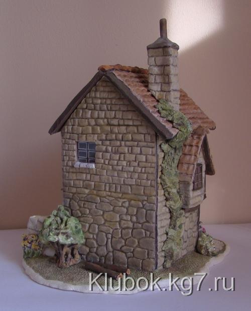 Технология изготовления прежняя — просто несколько больше деталей, и архитектура посложнее, чем у прежнего домика. А вообще, при определенных навыках из этой массы для лепки можно сделать практически все — абажуры для светильников, вазочки, подставки для мобильных телефонов и др. и др.