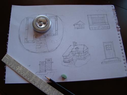 Сначала сделала предварительный набросок, а потом и чертеж все стен домика.